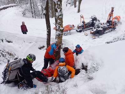 K nehodě tedy zamířili záchranáři ze stanic Jizerka a Bedřichov s potřebným vybavením na sněžných skútrech. „Lezec utrpěl poranění dolní končetiny, ale nebylo zcela jasné, zda jen velmi bolestivou pohmožděninu, nebo zlomeninu. Zafixovali jsme ho do vakuové matrace a s pomocí spolulezců a lanové techniky jsme jej šetrně dopravili ke skútru. Na něm pak na stadion v Bedřichově, kde jsme zraněného předali posádce vozu Rychlé zdravotnické pomoci," uvedl Martin Černý.