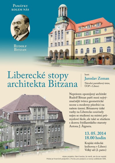 Všechny zájemce o památky a architekturu opět zve Národní památkový ústav, územní pracoviště Liberec, na přednášku do liberecké Krajské vědecké knihovny. V úterý 13. května od 18 hodin představí Jaroslav Zeman z Národního památkového ústavu architekta Rudolfa Bitzana a jeho významné realizace na Liberecku.