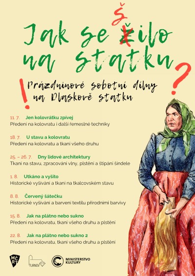 O prázdninách čekají na návštěvníky Dlaskova statku řemeslné dílny nazvané Jak se šilo na statku, které tematicky doprovodí výstavu Kolovrátek, stav i jehla. Návštěvníci se seznámí s tradičními technikami jako jsou předení na kolovratu, předtkalcovské techniky, tkaní na tkalcovském stavu, plstění, vyšívání či barvení přírodními barvivy.