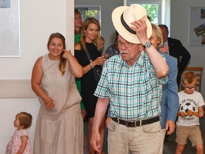Slavnostní besídka na rozloučenou s dětmi, které po prázdninách usednou do školních lavic, se koná v Rádle každoročně na konci června. Letos měla slavnostnější tón, protože přijeli vzácní hosté - oblíbený skladatel Jaroslav Uhlíř s manželkou Helenkou.
