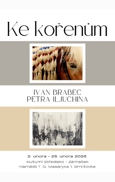 Výstava Ke kořenům se koná v únoru ve výstavní síni smržovského Zámečku. Výstavu tvoří tři samostatné a zdánlivě nesouvisející soubory - obrazy Petry Iljuchiny a dva fotoreporty Ivana Brabce.