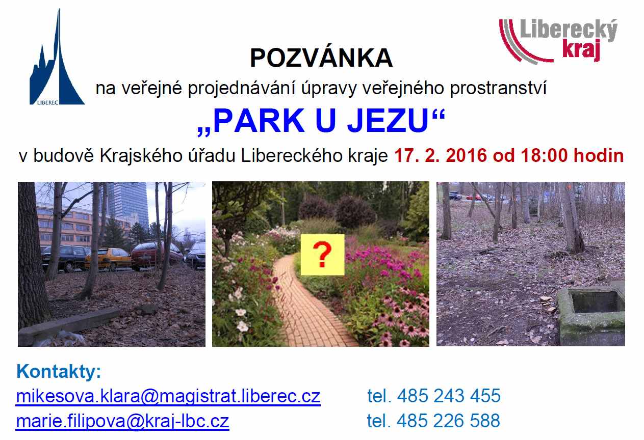O tom, jak bude prostor v dolní části Liberce následně vypadat, může rozhodnout i široká veřejnost. Liberecký kraj a statutární město Liberec pořádají ve středu 17. února debatu na téma budoucnost Parku U Jezu. Přijít může každý, kdo se chce do rozhodování o budoucnosti parku zapojit. Veřejné projednávání začne v 18 hodin v multimediálním sálu Krajského úřadu Libereckého kraje, ve 3. patře.