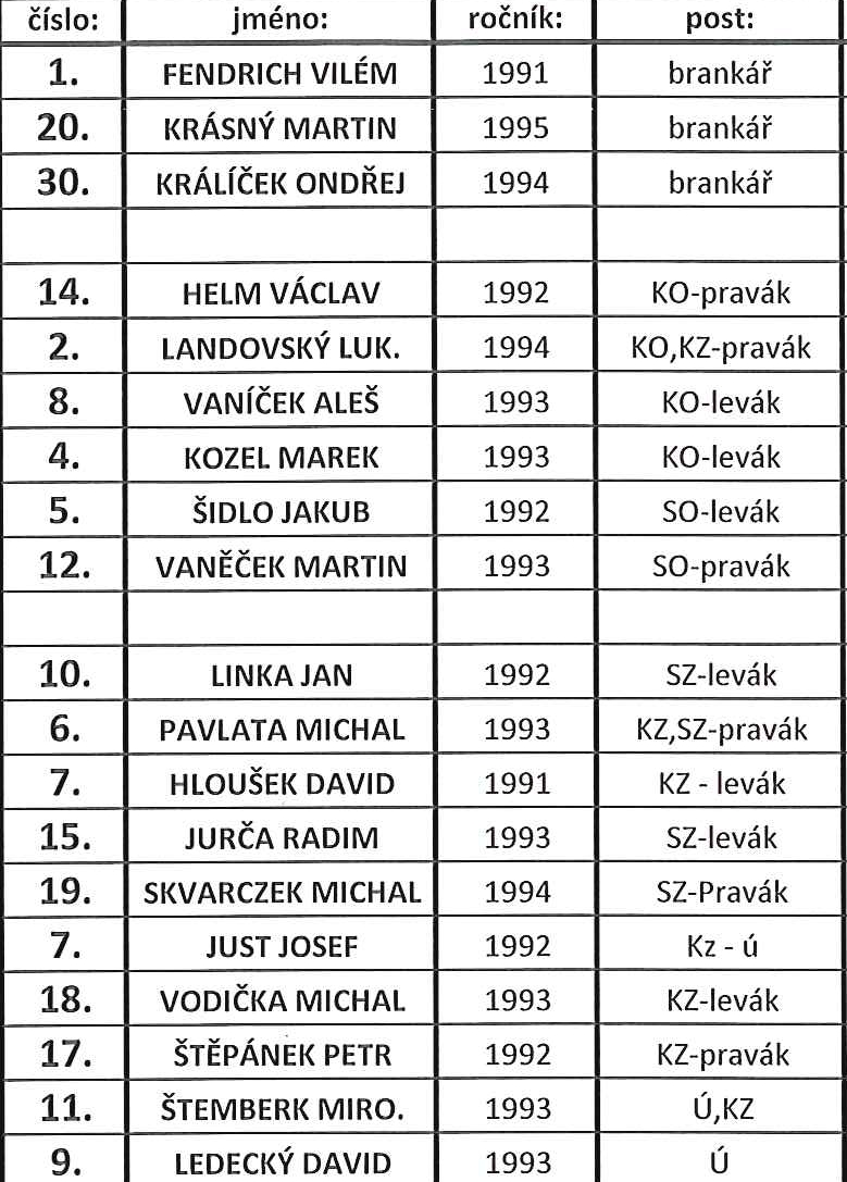 Hráči, kteří jsou v přípravě: