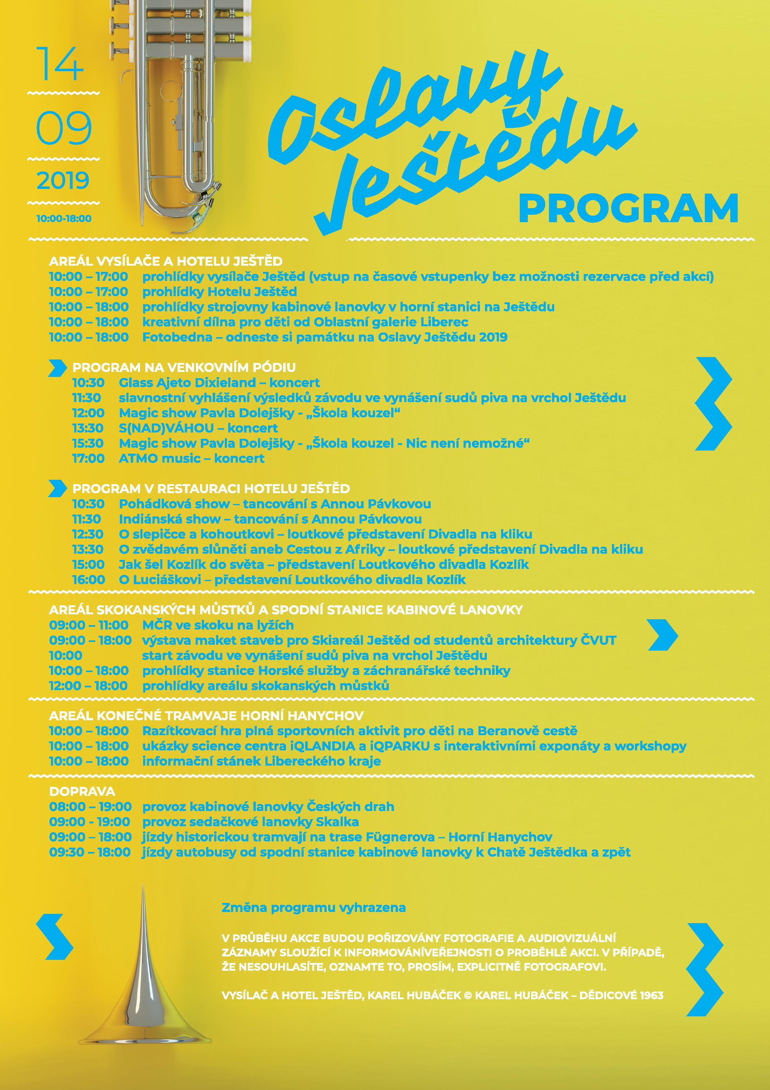 Plakát Oslavy Ještědu 2019 s programem