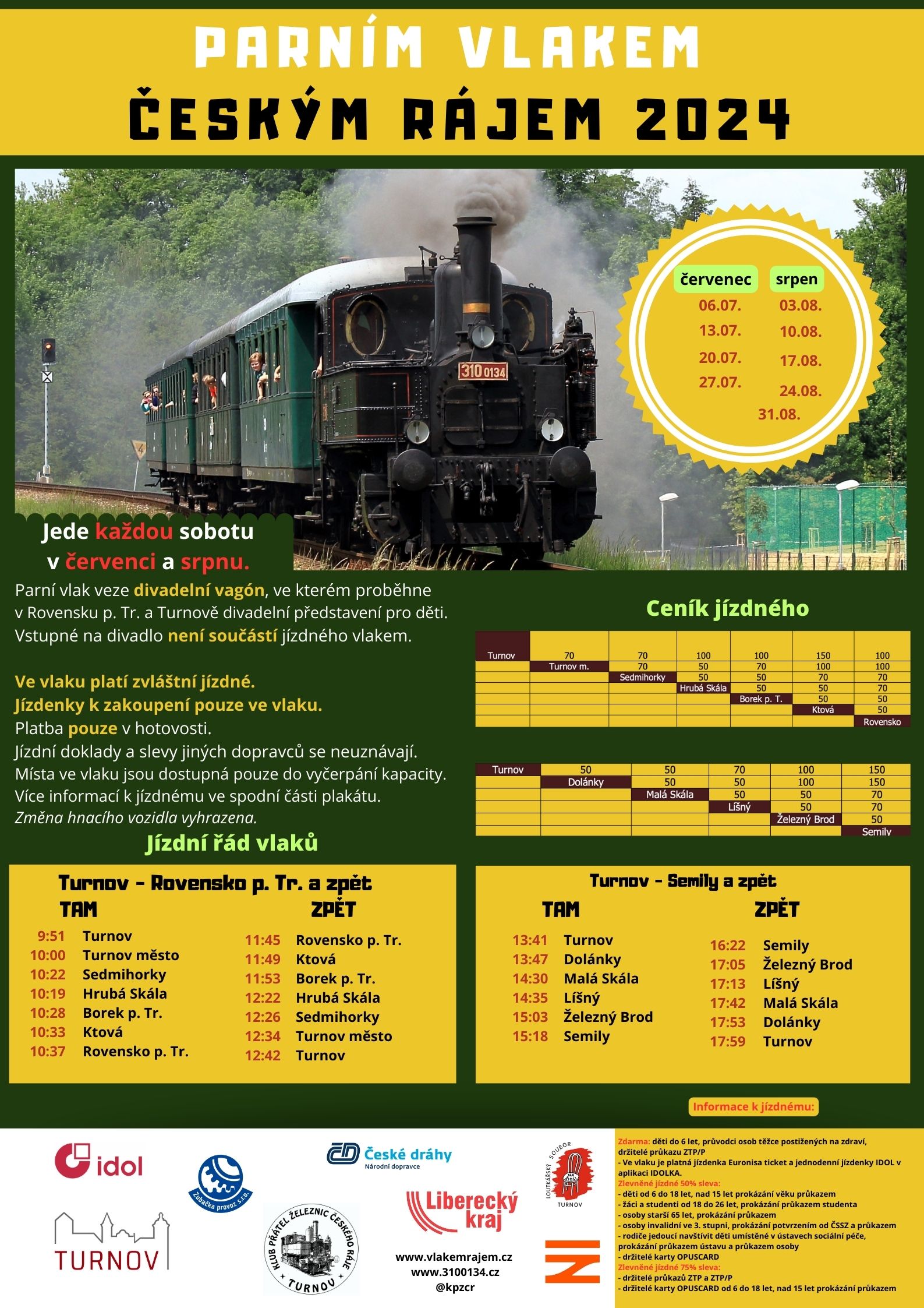 Děti i všechny fanoušky železnice o prázdninách opět těší jízdy historických vlaků Českým rájem. Po loňské změně s cílem v Košťálově kvůli rekonstrukci semilského nádraží, letos již od soboty 6. července opět jezdí z Turnova do Rovenska pod Troskami a Semil.