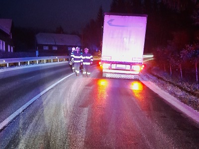 V Kořenově například nákladní automobil zablokoval jeden jízdní pruh z důvodu špatné sjízdnosti komunikace. Do doby odstranění překážky hasiči usměrňovali dopravu kyvadlově. Na místo bylo nutné povolat správce komunikace. Jezděte opatrně.