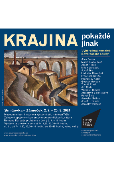 Ve dnech 2. července až 25. srpna 2024 přivítá výstavní síň Zámečku výstavu obrazů ze Severočeské sbírky pojmenovanou Krajina pokaždé jinak. Pod stejným názvem se na sklonku jara uskutečnila přehlídka krajinomalby v Hejnicích. Rovněž někteří umělci zůstávají stejní, ale tím shoda končí. Vystavené obrazy jsou díky bohatosti fondu Severočeské sbírky jiné.