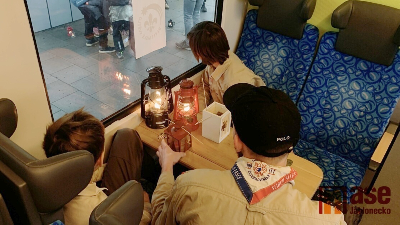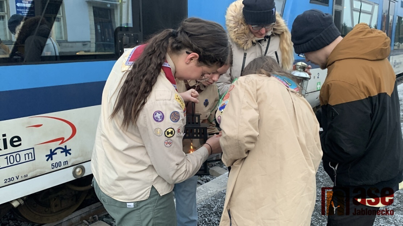 Otevřít související aktualitu: Obrazem: Skauti rozváželi Betlémské světlo na Jablonecku